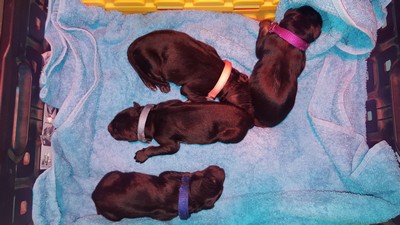 te groot zijn. Daarom heb ik deze pups gemerkt met nagellak. Vanaf